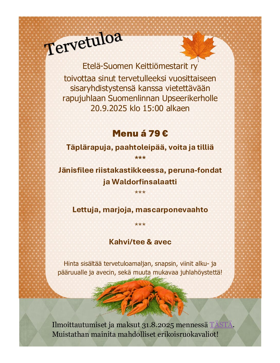 Etelä-Suomen Keittiömestarit ry:n rapujuhlat