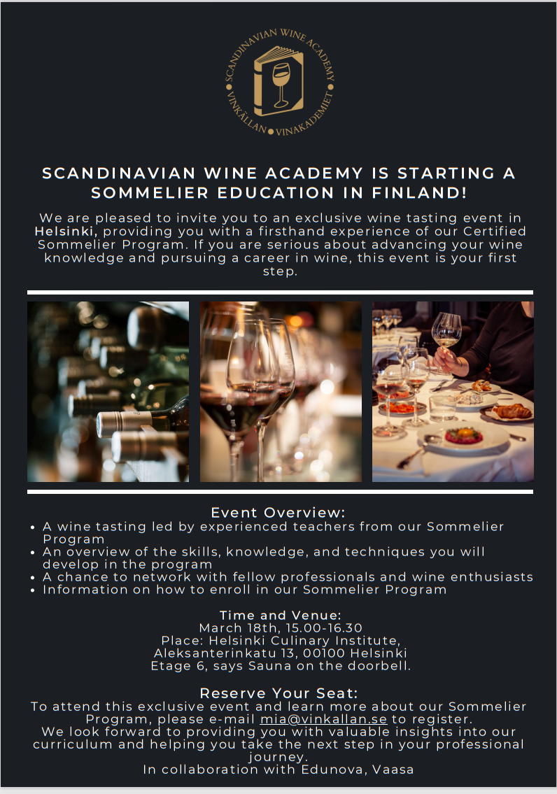 Scandinavian Wine Academy is starting a sommelier education in Finland!