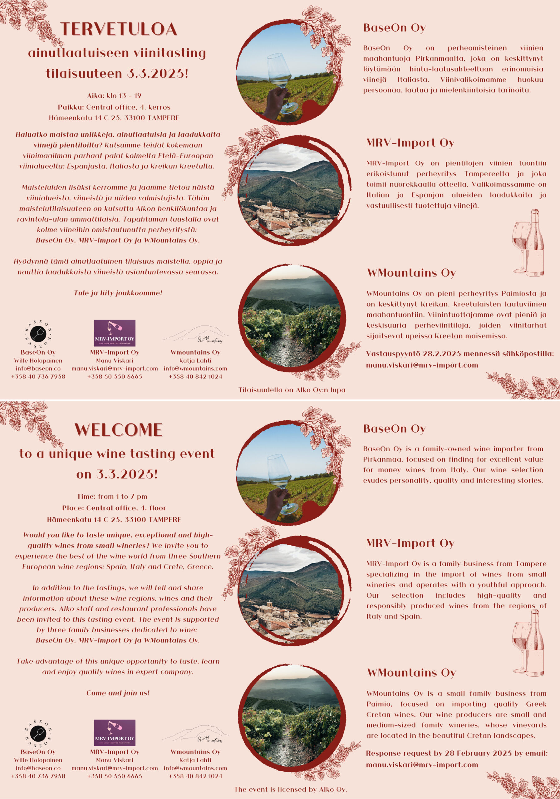 Viinitasting – BaseOn – MRV Import – WMountains – Tampereella