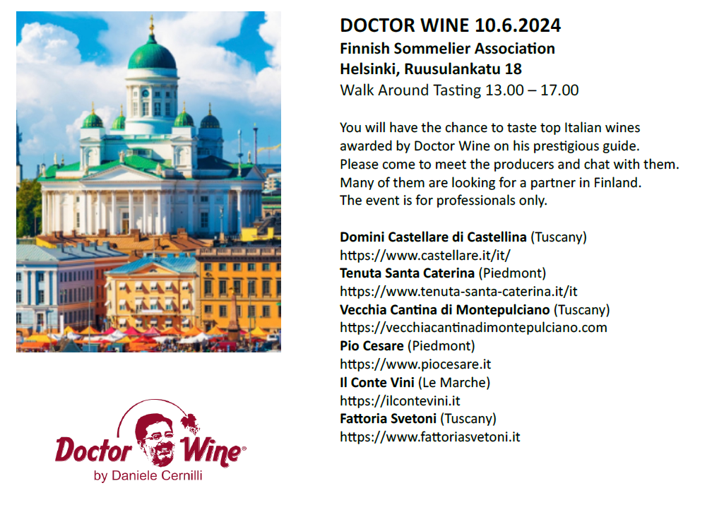 Italian Trade Connections ja Doctor Wine by Dario Cerilli tuovat Helsinkiin italialaisia viinintuottajia ja huippuviinejä, jotka on palkittu Doctor Wine:n arvostetussa viinioppaassa. (www.doctorwine.wine/?lang=en).